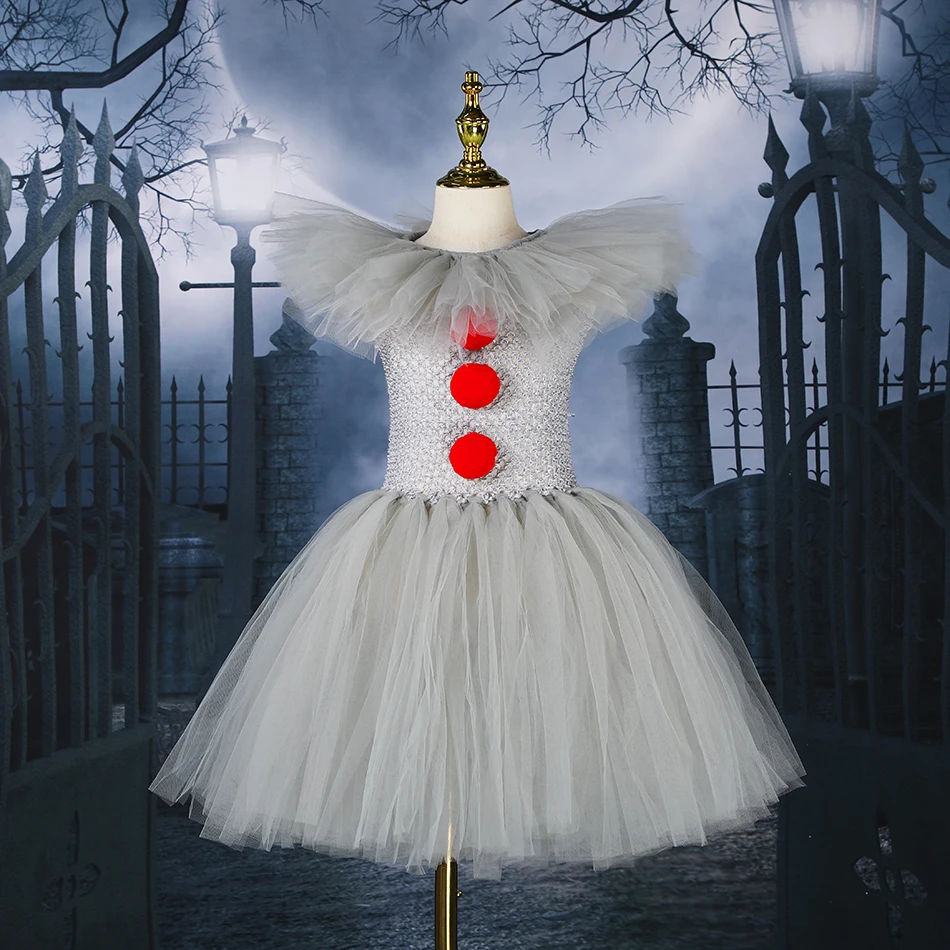 Halloween Clown Dress Kids Horror Movie Cosplay Costume Set for Girls Carnival Party Party Dress Up Clowns Clothing 3-10Yre