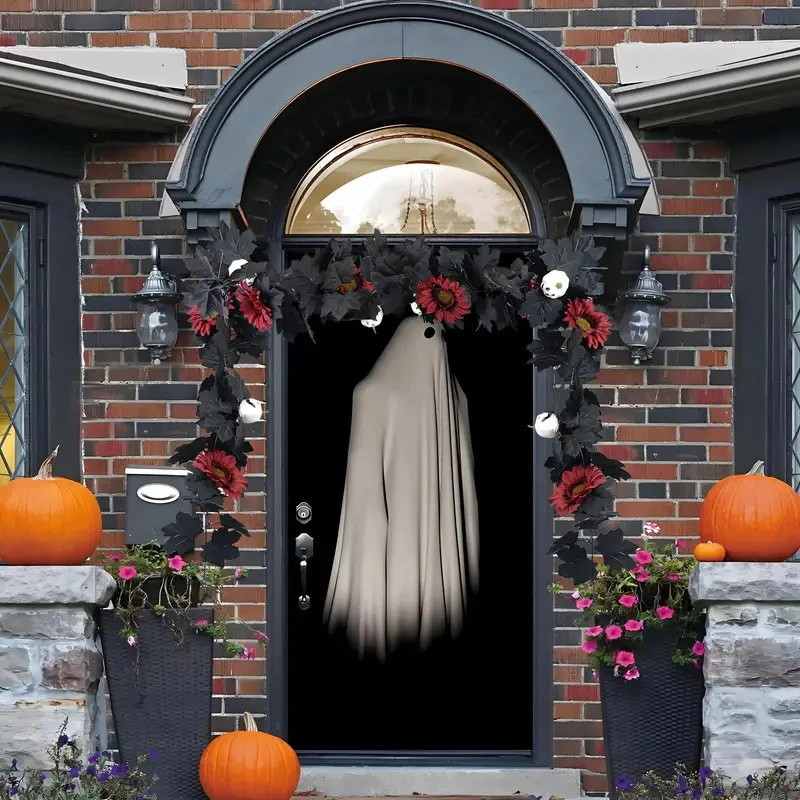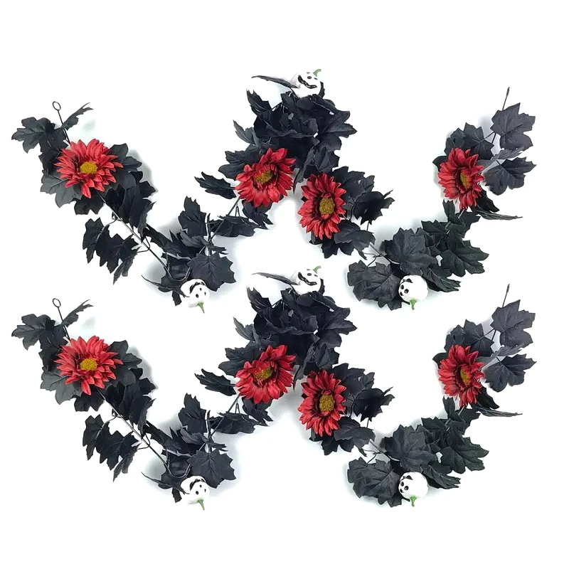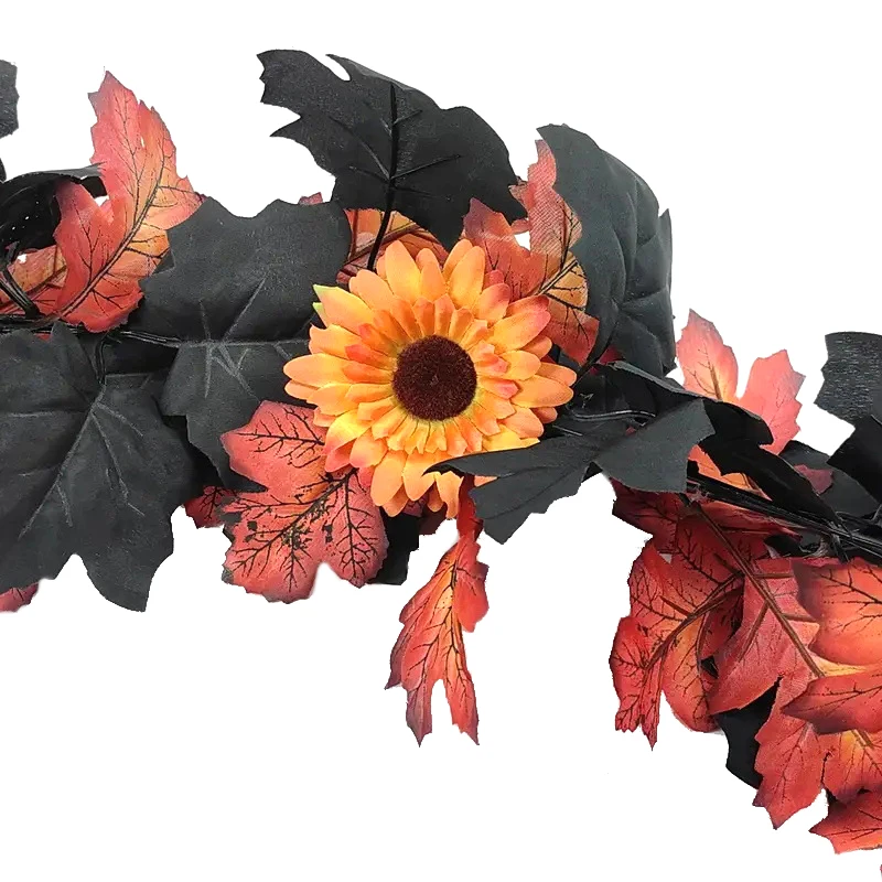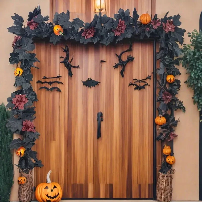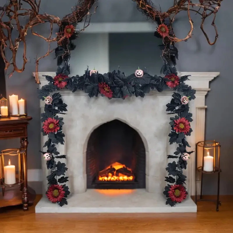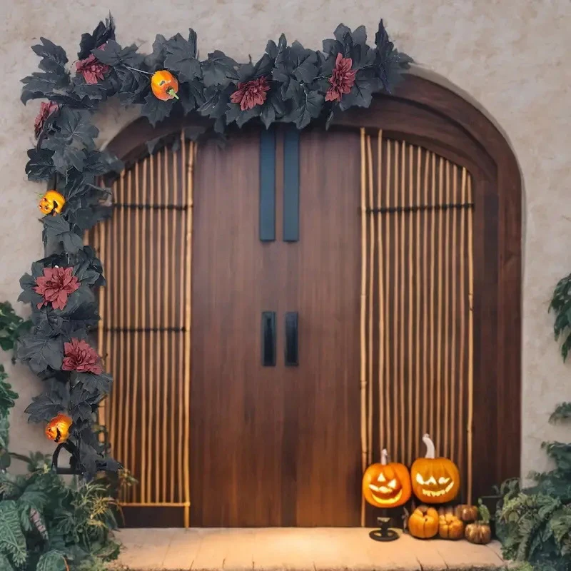 1 Halloween Wreath - 5.74ft Gothic Maple Leaves And Pumpkin Vines With Spooky Decorations To Create A Spooky Holiday And Firepla