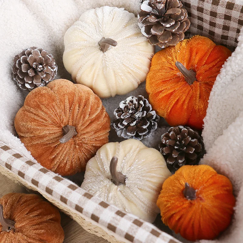 9pcs 3 Size Velvet Artificial Pumpkins Mixed for Halloween Party Thanksgiving Home Table Decoration Autumn Fall DIY Craft Wreath
