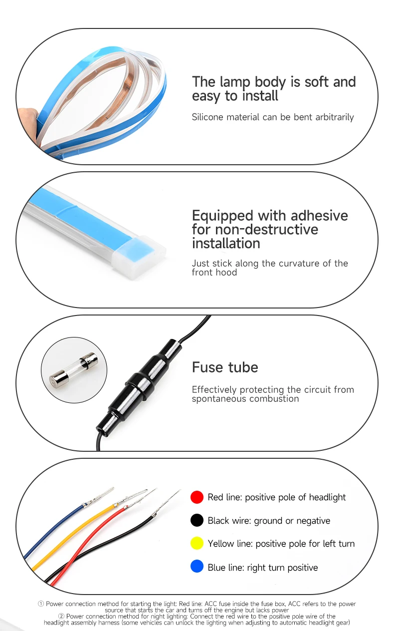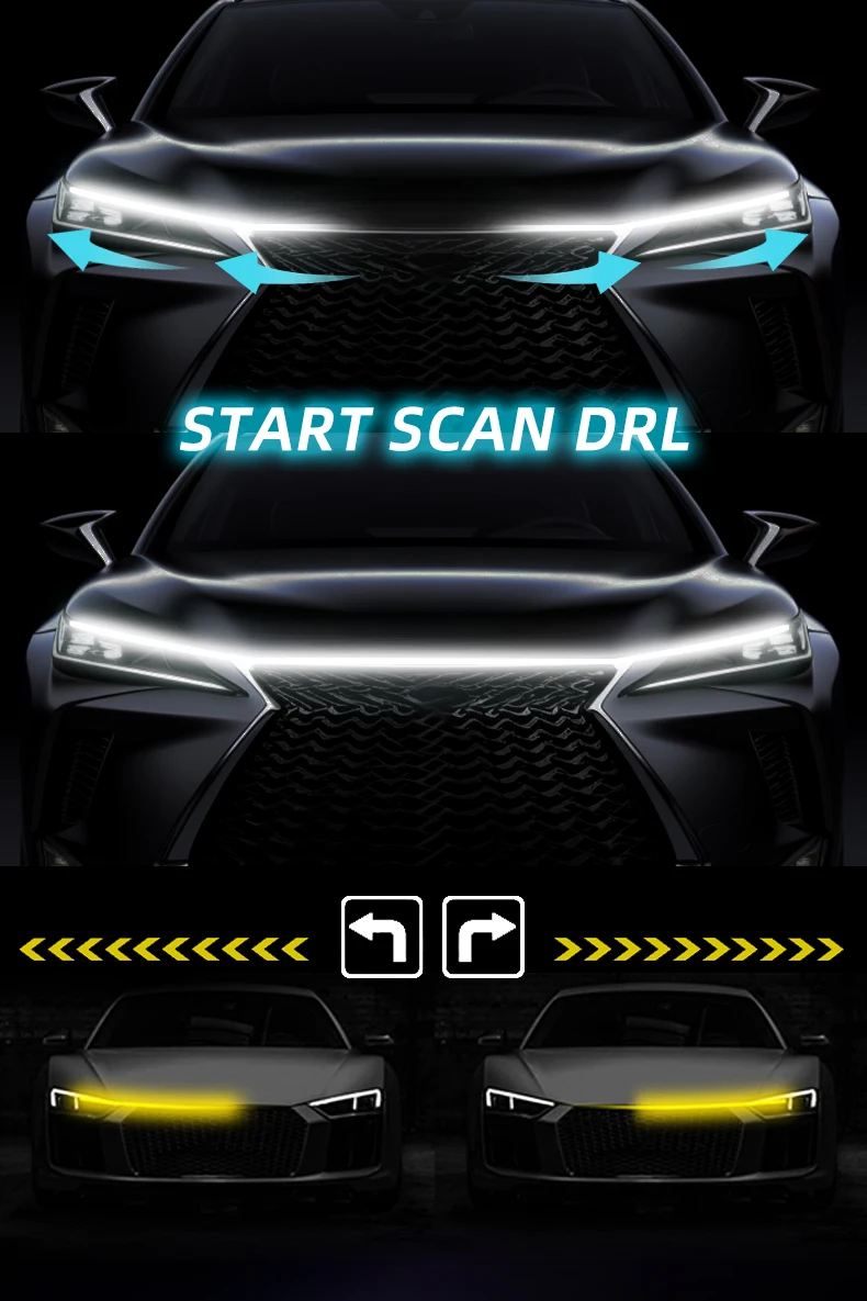 Dynamic Led Car Hood Light Strip With Turn Signal Indicator Flexbile Engine Hood Guide Decorative DRL Daytime Running Lights 12V