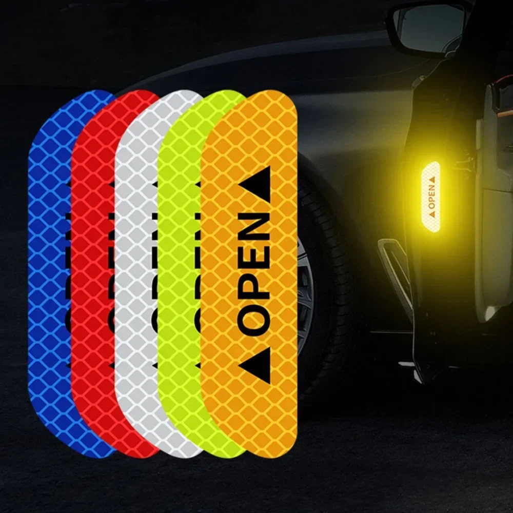 4PCS Reflective Car Stickers Auto Door Safety Opening Warning Reflector Tape Decal Exterior Cars Sticker for Car Accessories