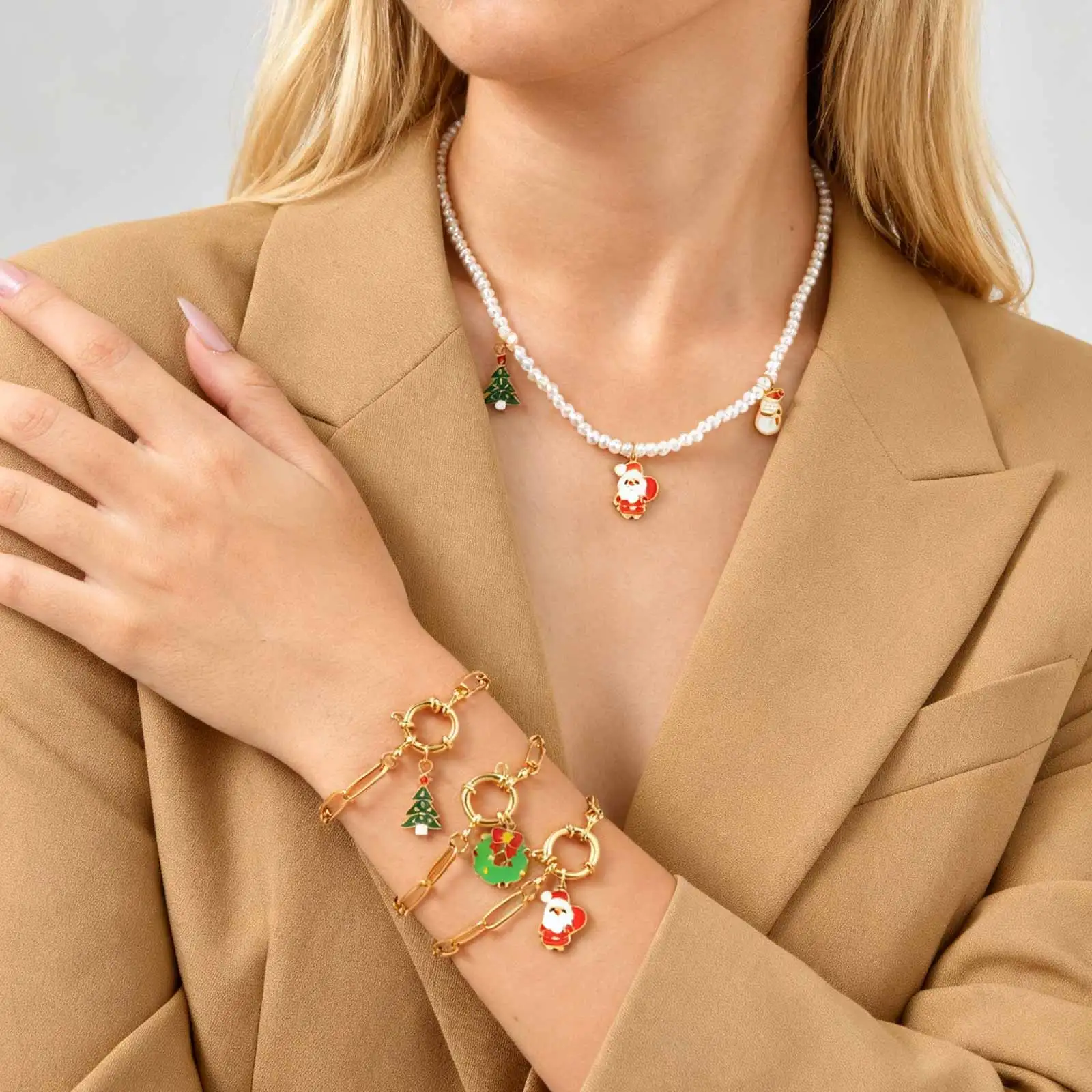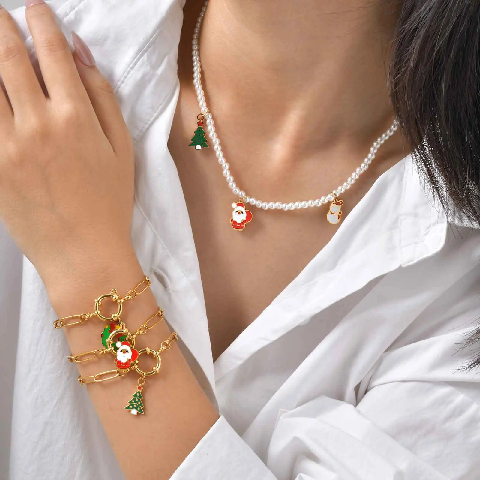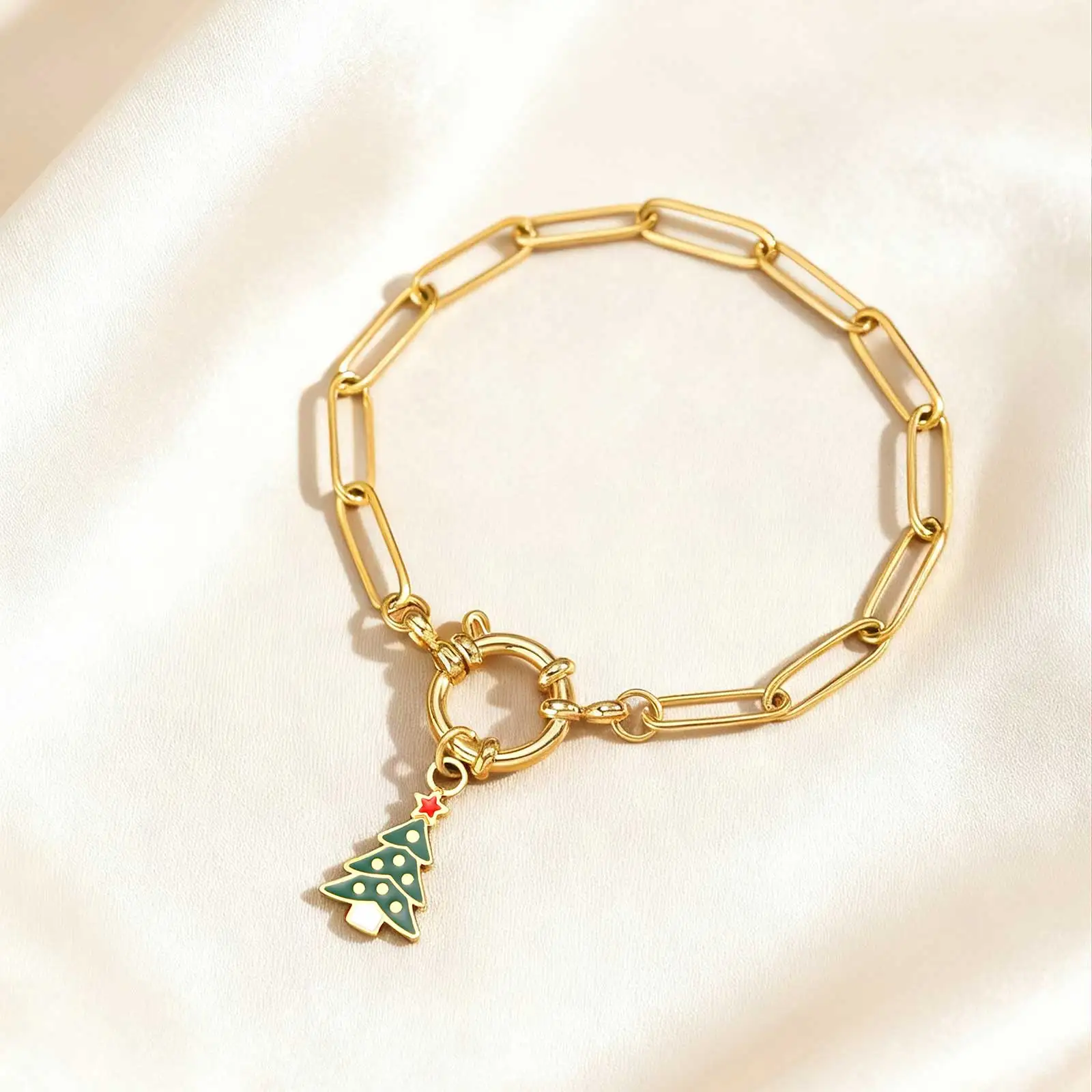 18CM Cute Santa Bubble Buckle Bracelet for Women,Gold Plated Stainless Steel Small Square Chain Bracelets,Merry Christmas Gift
