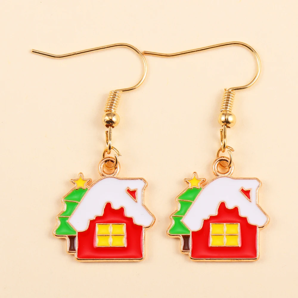 2Pairs Cute Christmas Set Earring Alloy Enamel Bell Snowflake Snowhouse Design Earrings - Perfect Holiday Jewelry Gift