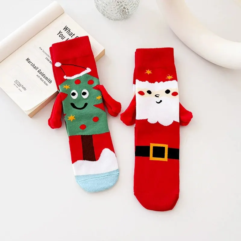 Christmas Hand-holding Socks For Couple Snowman Christmas Socks Kawaii Cartoon Christmas Gift Mid-calf Socks Autumn and Winte