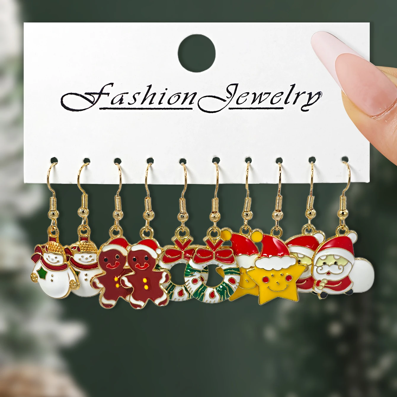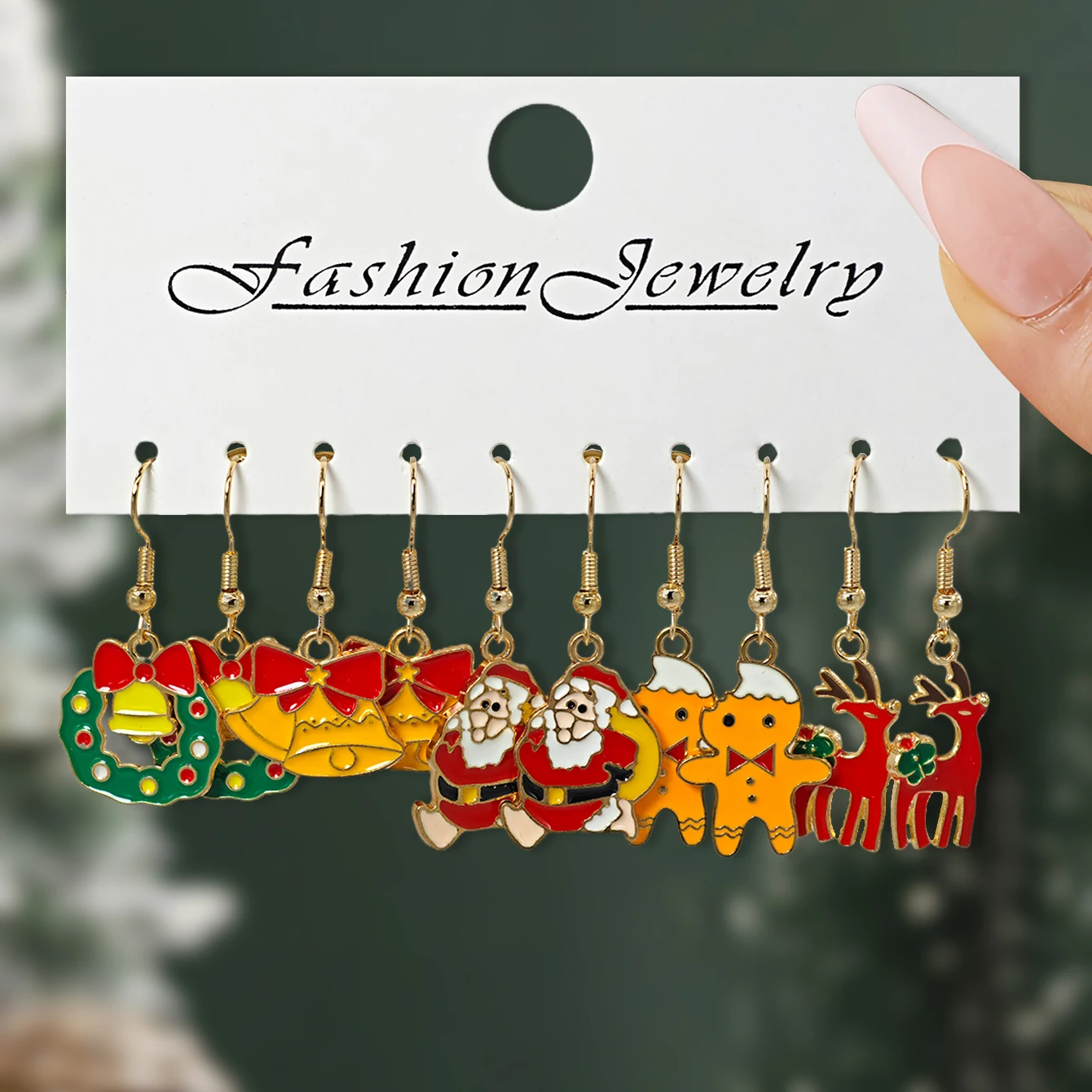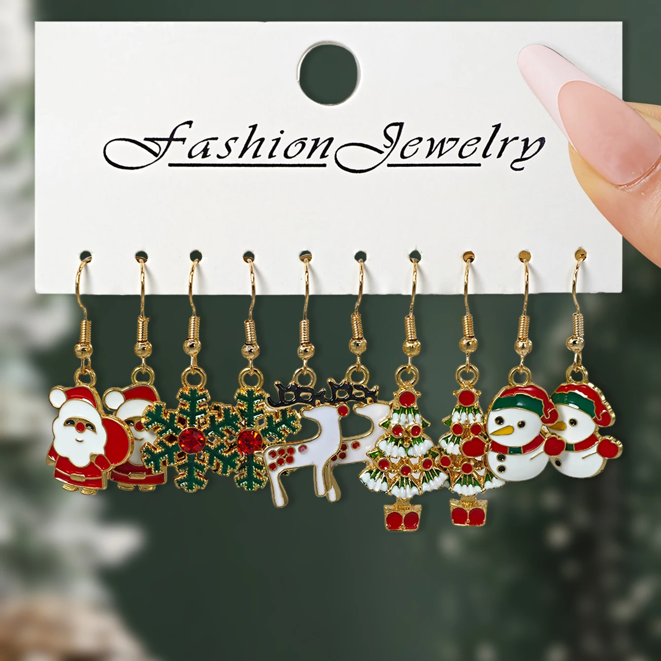European American Cross Border Christmas Style Jewelry Classic Holiday Santa Claus Christmas Tree Reindeer Earrings Set
