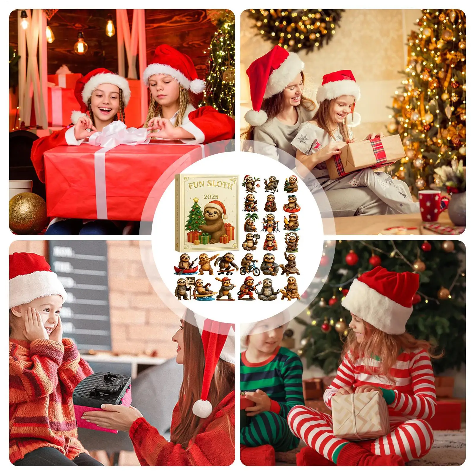 Sloth Christmas Countdown Calendar Acrylic Ornament 24 Days Advent Decor for Home Holiday Party Celebration Winter Xmas Gift