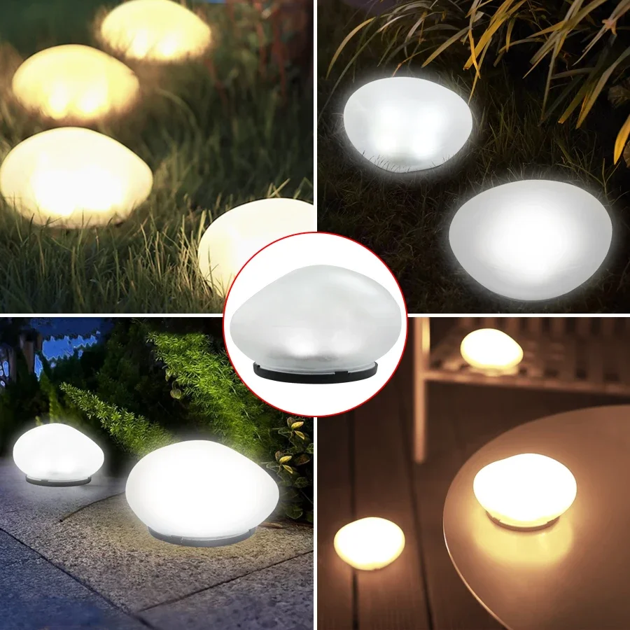 Headline: Solar Pebble Lights - Waterproof, Wireless & Auto-On Garden Decor