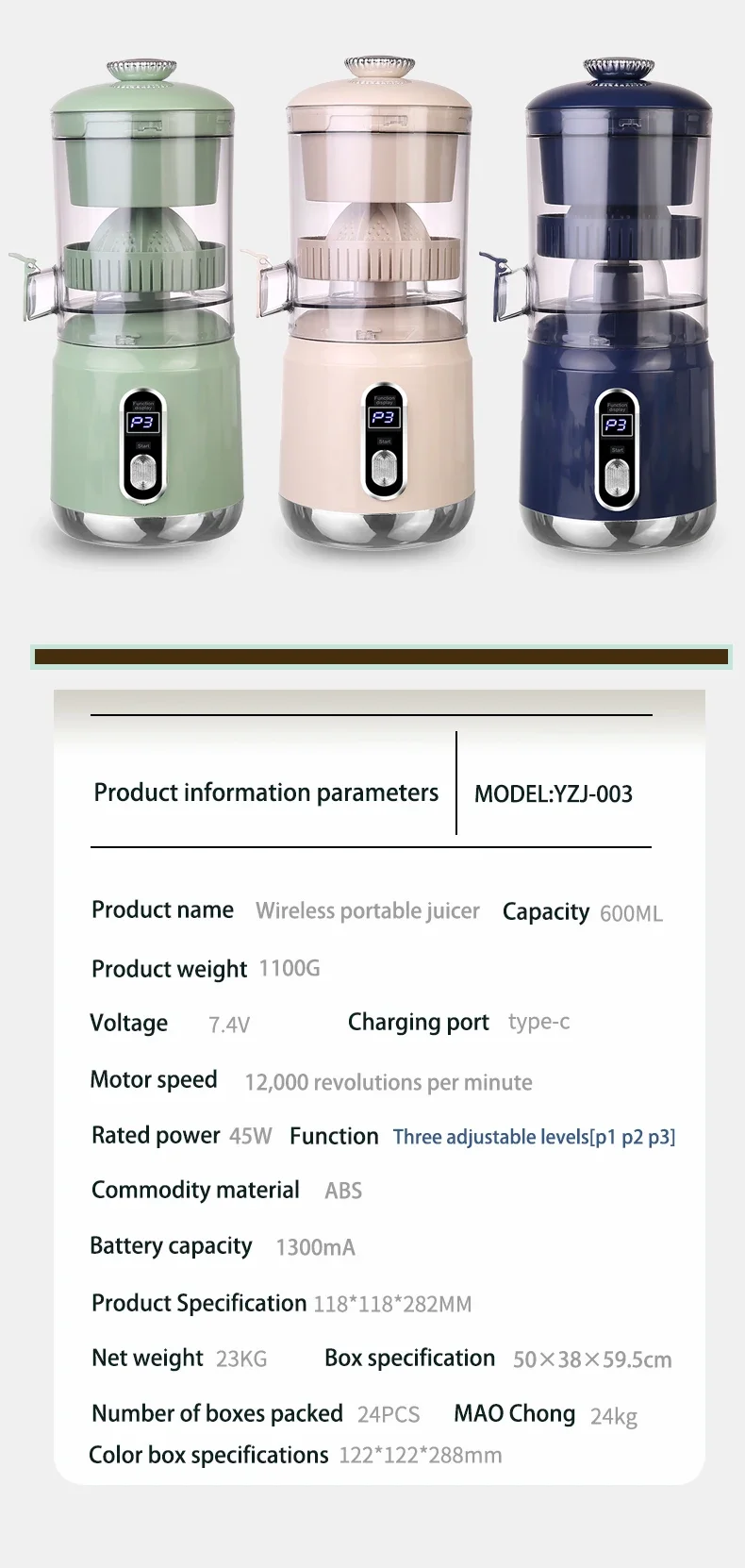 Electric Orange Juicer Portable 600ml Original Citrus Fruit Juice Extractor