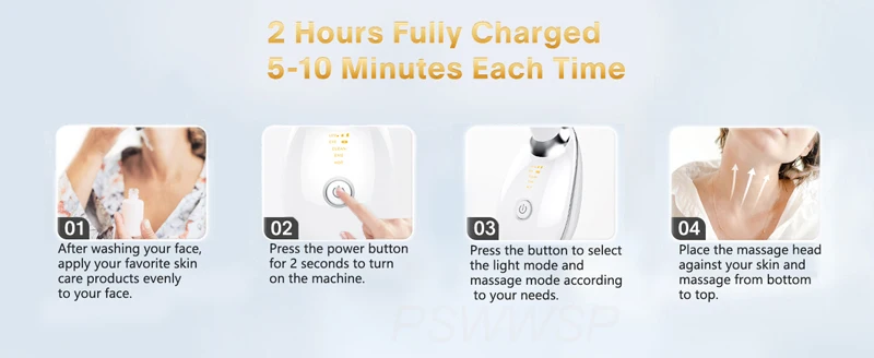 This product can be used to clean the skin, do EMS care and moisturize skin in a warm temperature, which infegrates positive ion, negative ion, high-frequency vibration, red light, blue light and green light.