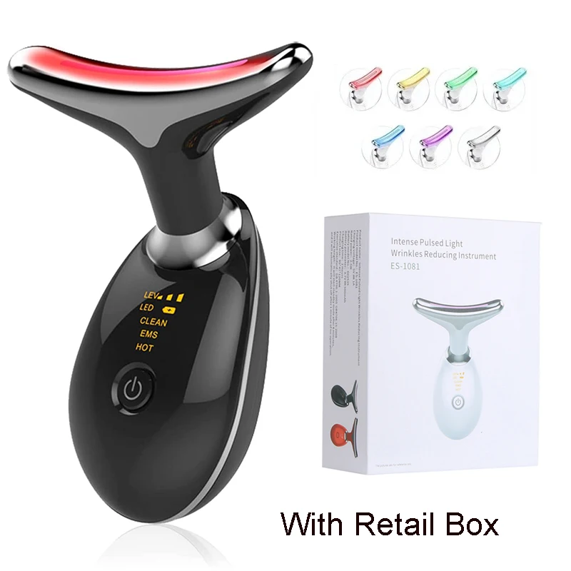 EMS Neck Facial Massager Lift Seven Colours LED Photon Therapy Vibration Face Beautify Anti Wrinkles Tightening Skin Care Device