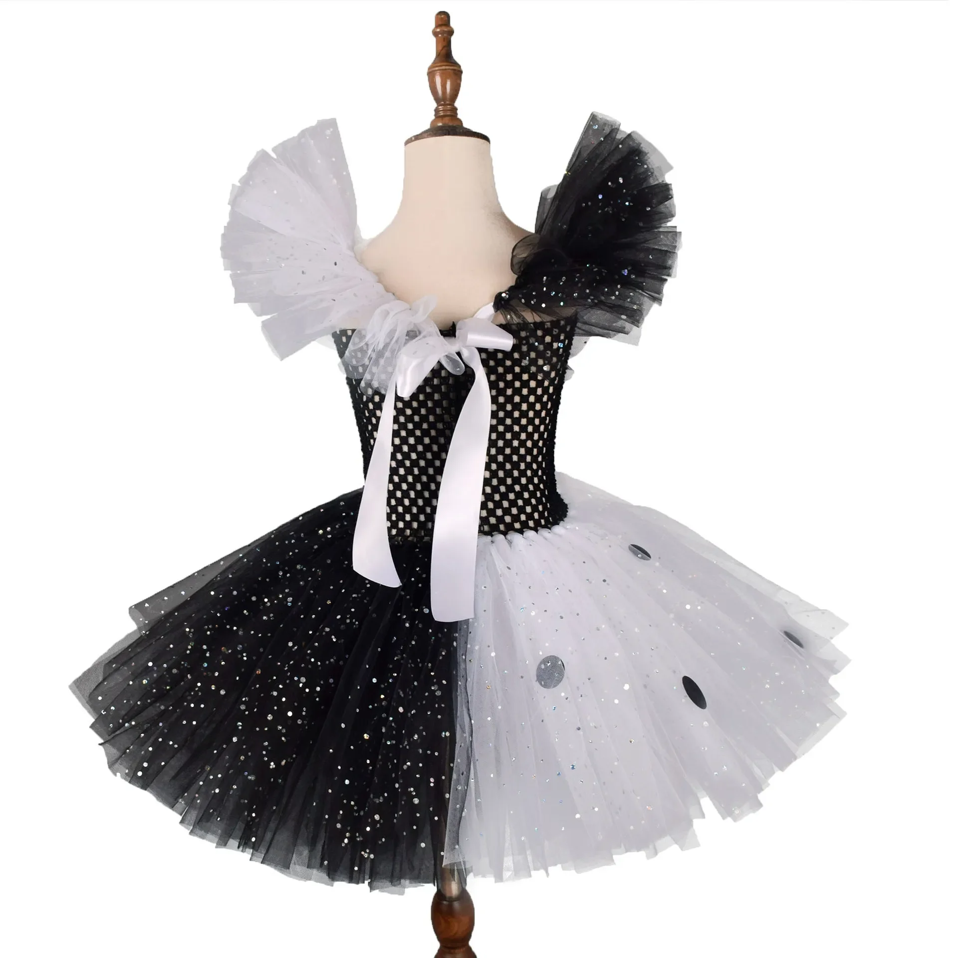 Cosplay Black White Cruella Girls Costume Black Dot Tutu Dress for Kids Villian Cruella De Vil Halloween Outfit Children Clothes