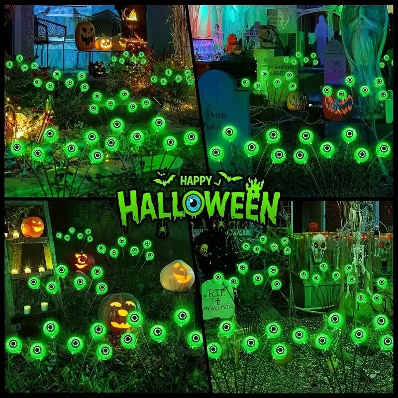 1/2/4pcs Solar Eyeball Lights, 6-Head Outdoor Firefly Lights Halloween Solar Stake Lights Garden,Lawn,Yard,Festival Decor
