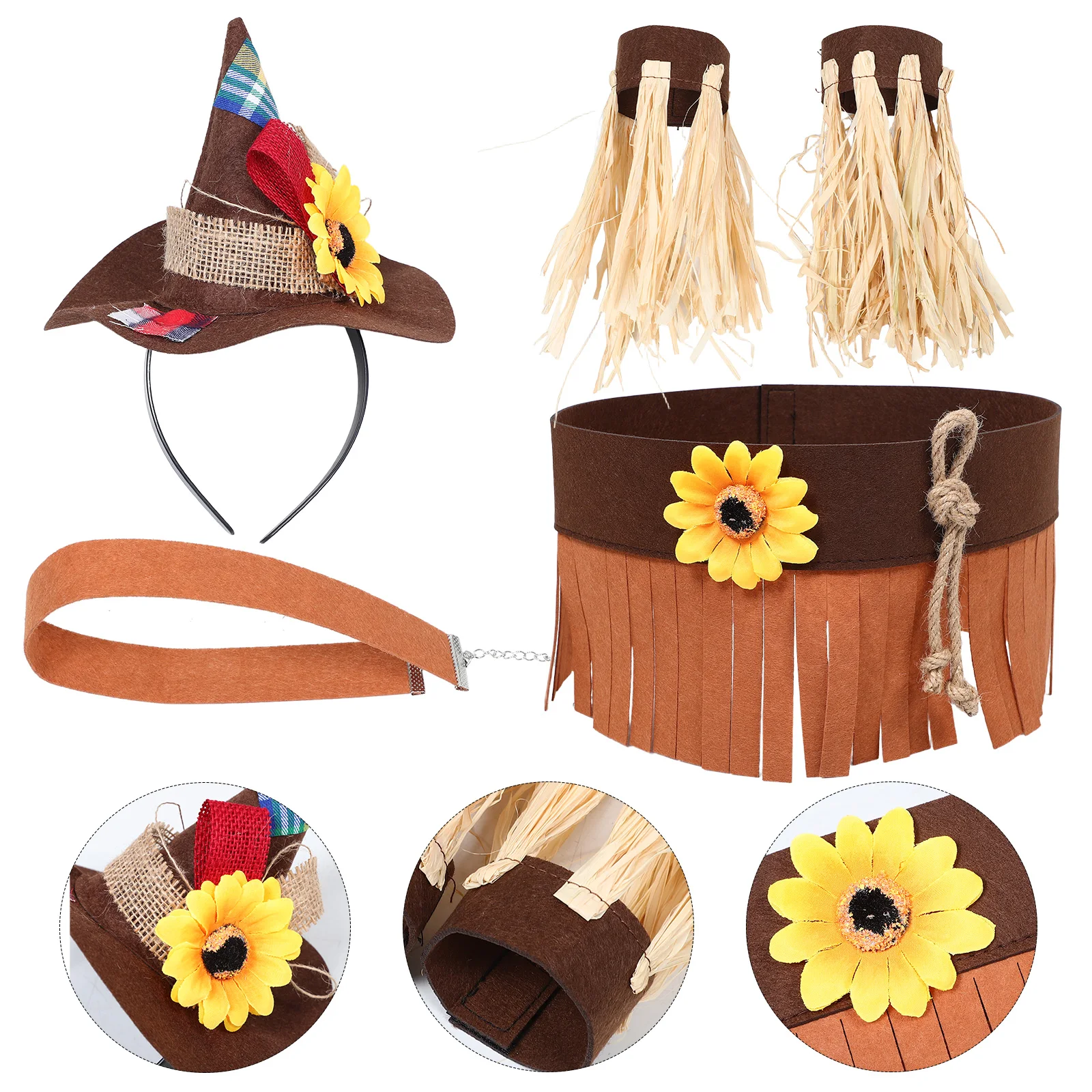 1 Set Halloween Scarecrow Costume: Felt Wizard Necklace Wristband Decoration Accessories For Party Carnival Holiday Celebrations
