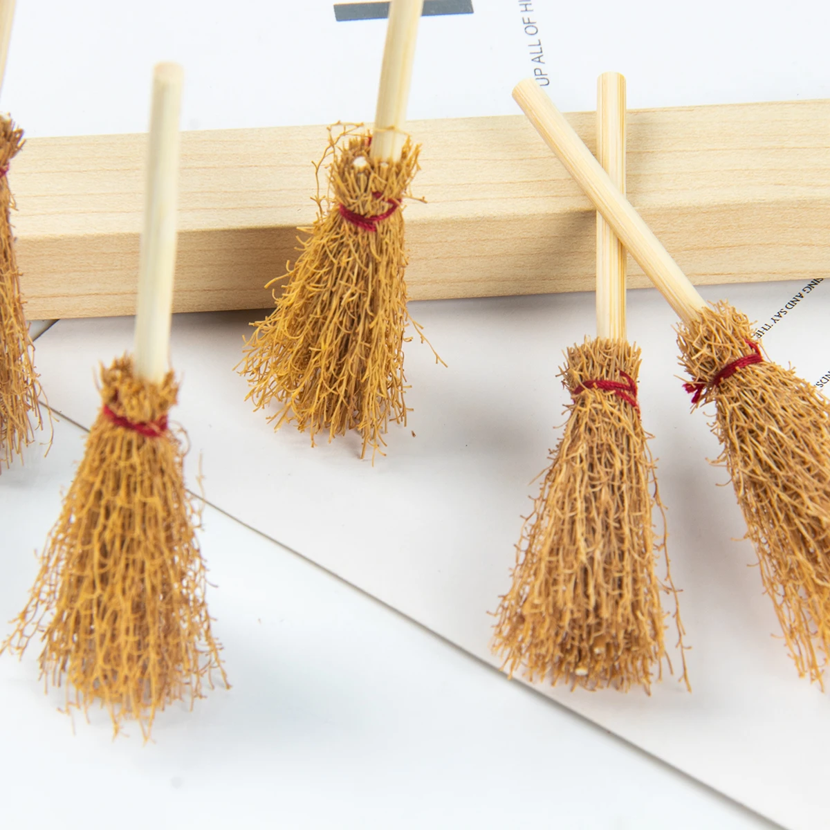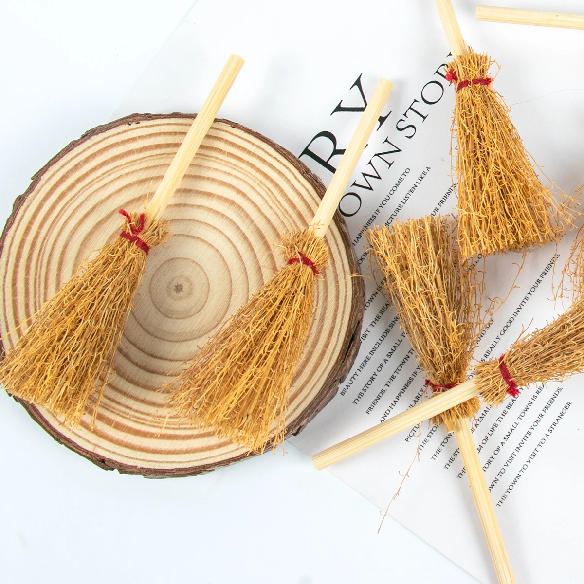 10/20pcs Mini Halloween Witch Broom DIY Hanging Ornaments Artificial Miniature Brooms Halloween Decoration Dollhouse Accessories