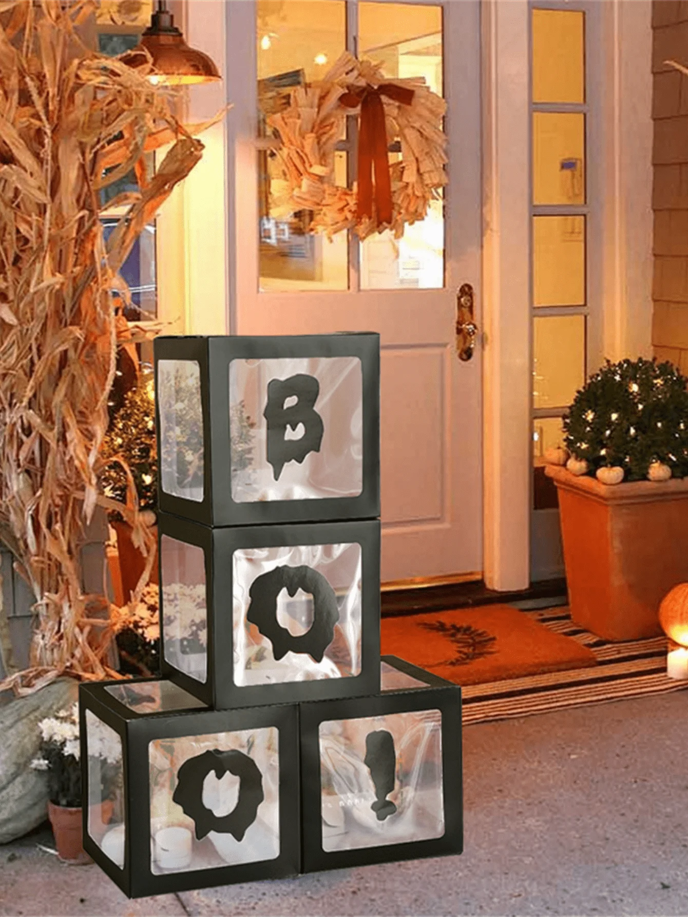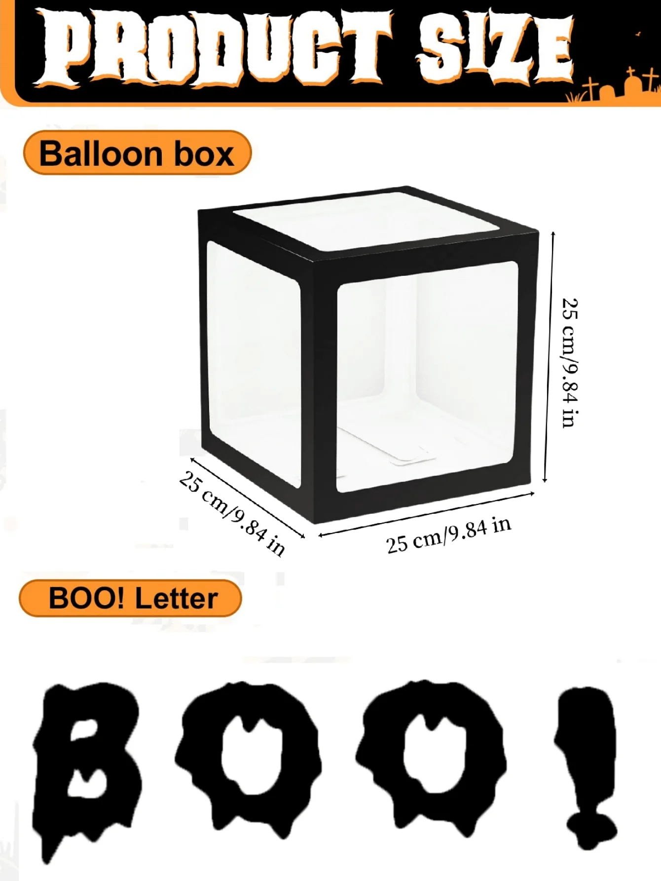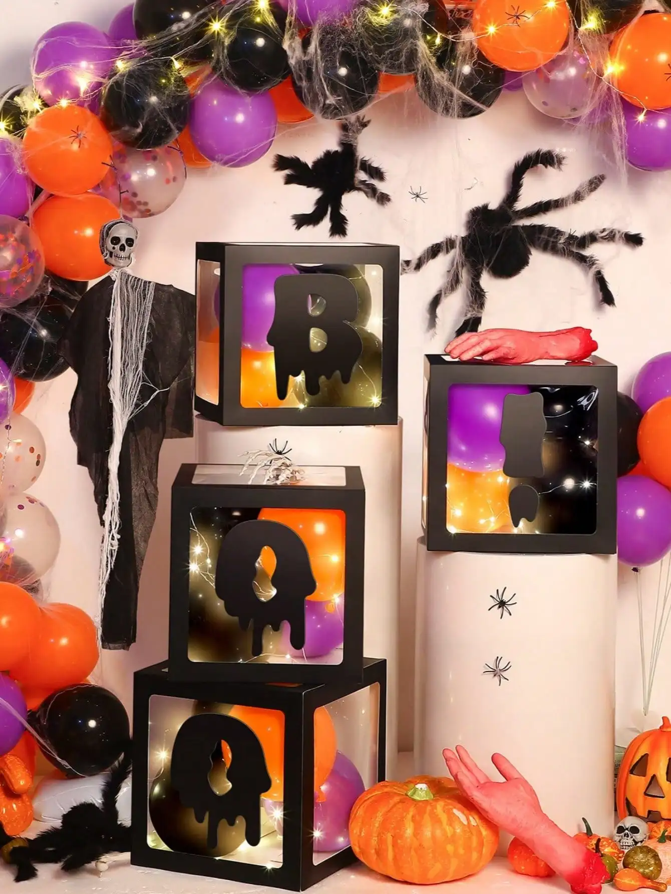 4Pcs Halloween Balloon Boxes with 4 black “BOO!” letter,Balloon Arch Decor for Halloween Party Decorations Shower Decoration