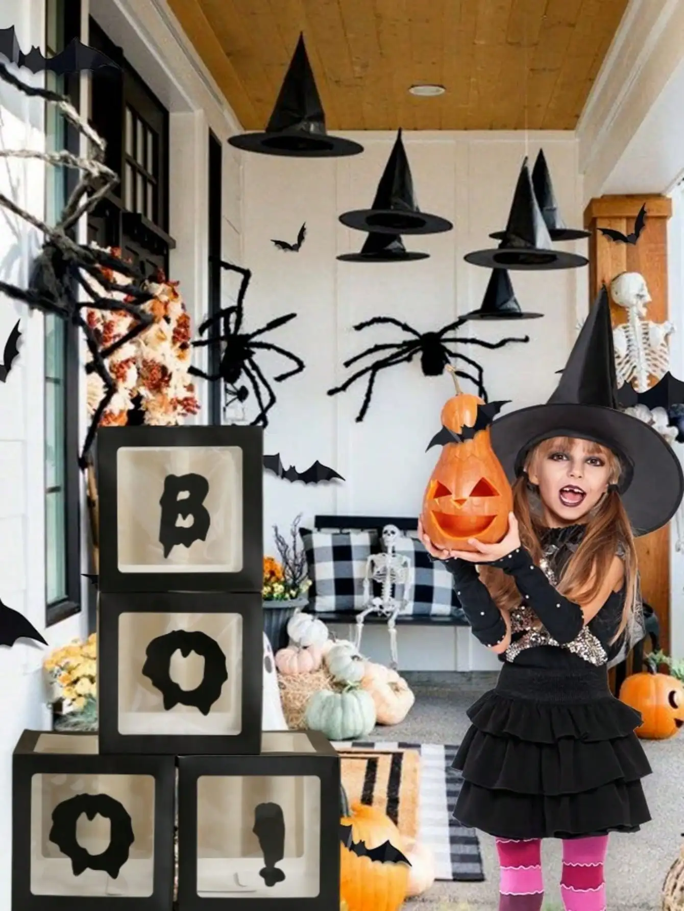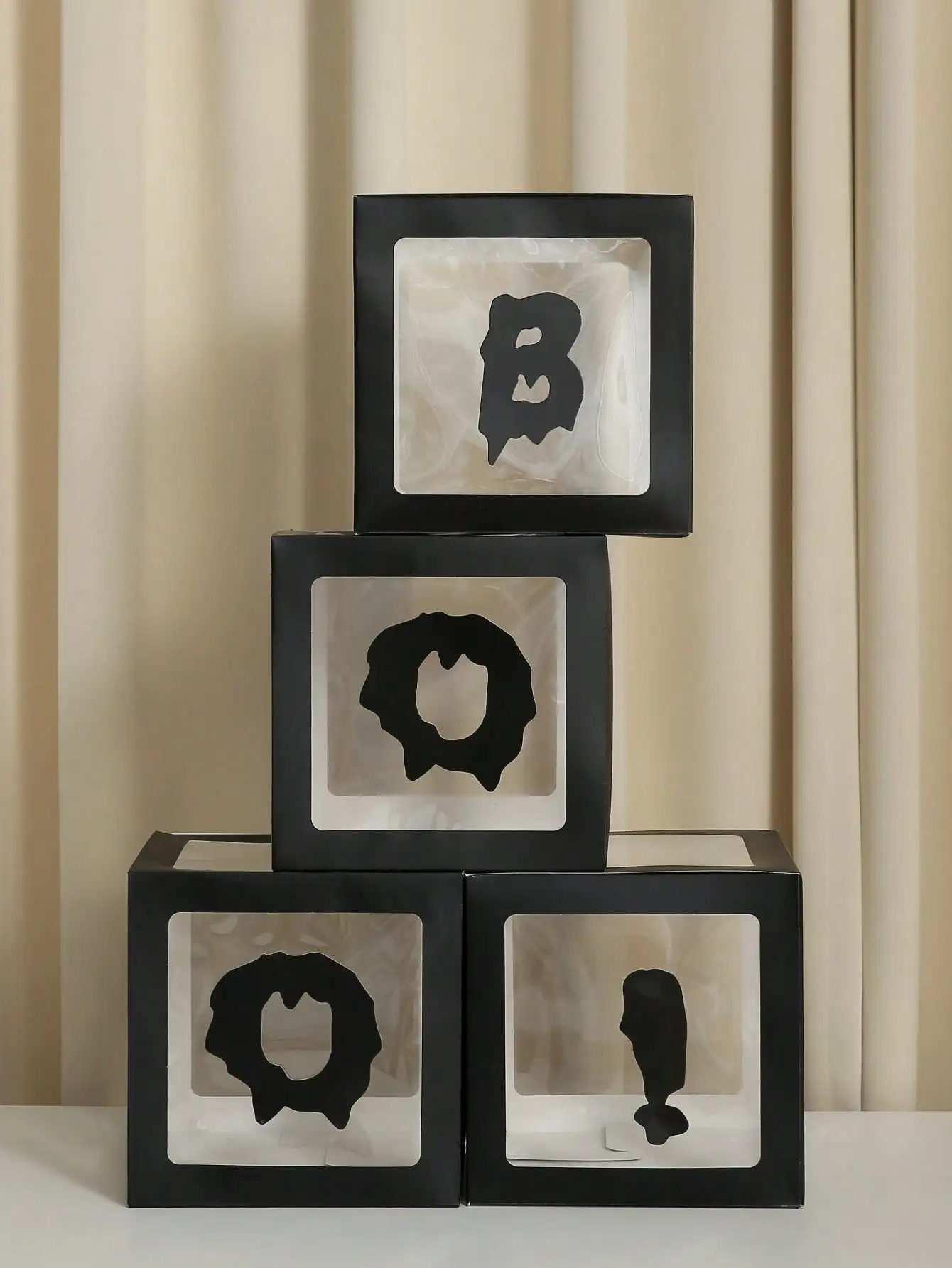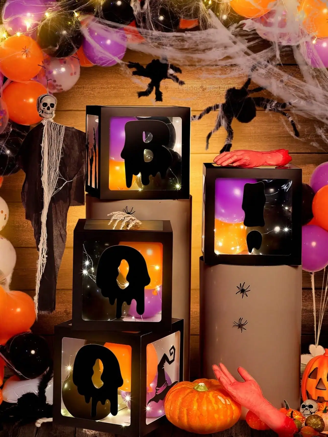 4Pcs Halloween Balloon Boxes with 4 black “BOO!” letter,Balloon Arch Decor for Halloween Party Decorations Shower Decoration