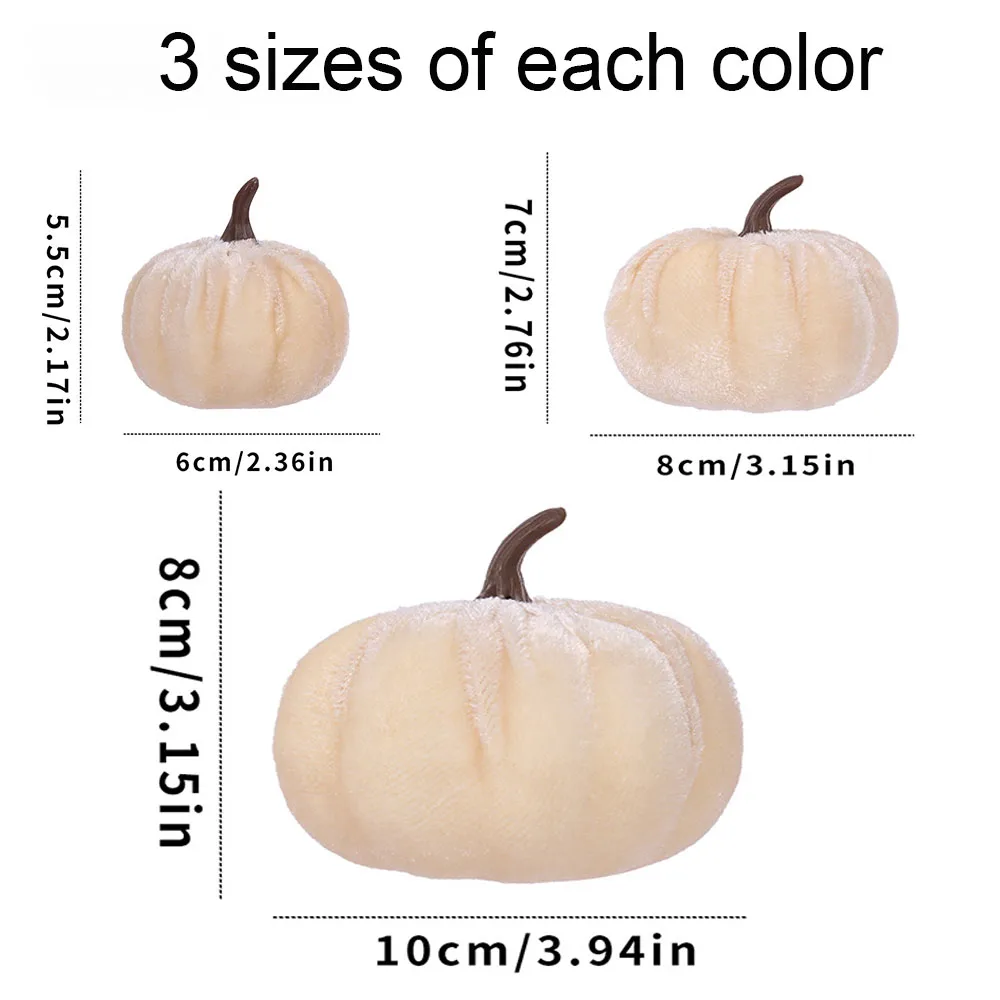 9pcs 3 Size Velvet Artificial Pumpkins Mixed for Halloween Party Thanksgiving Home Table Decoration Autumn Fall DIY Craft Wreath
